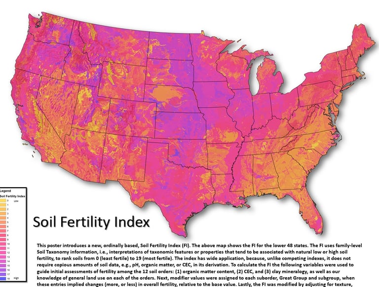 A helpful resource is the US Forest Service Soil Fertility Map (PDF), which highlights areas with naturally fertile soil.